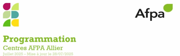 Découvrez les formations proposées par l'AFPA dans l'Allier Document téléchargeable Programmation AFPA 2025-2028.pdf 302.80 Ko le service Insertion vers Emploi du Département de l'Allier 04/08/2025